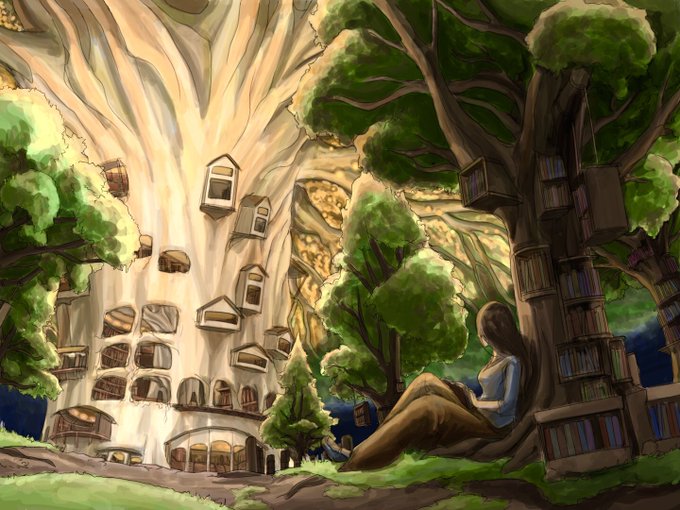 建築擬人化シリーズ 「豊島美術館」 Teshima Art Museum 夜は入れないはずですが #豊島美術館 #西沢立衛 #内藤礼 #擬人化 #建築 #建築擬人化 #ibispaint #イラスト #デジタルイラスト #絵師さんと繋がりたい #絵描きさんと繋がりたい #イラスト好きと繋がりたい #drawing #painting #illustration