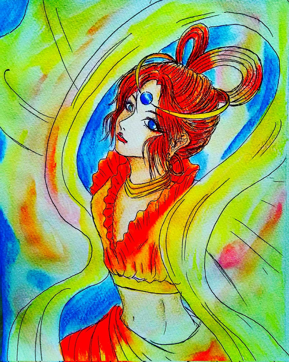 前に描いたモノクロイラストに色塗りをしました🎨✨ #イラスト