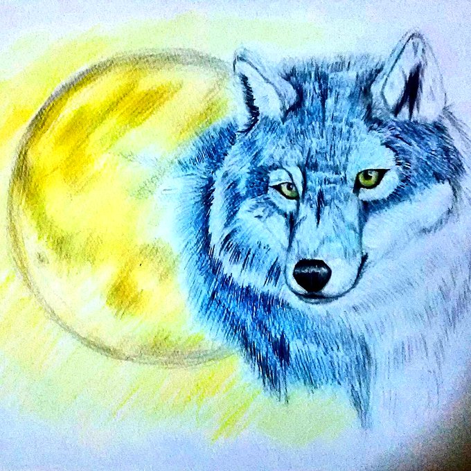 0 4 狼🐺と満月🌕✨ #イラスト #illustration #狼と満月 22/06/16 20:52