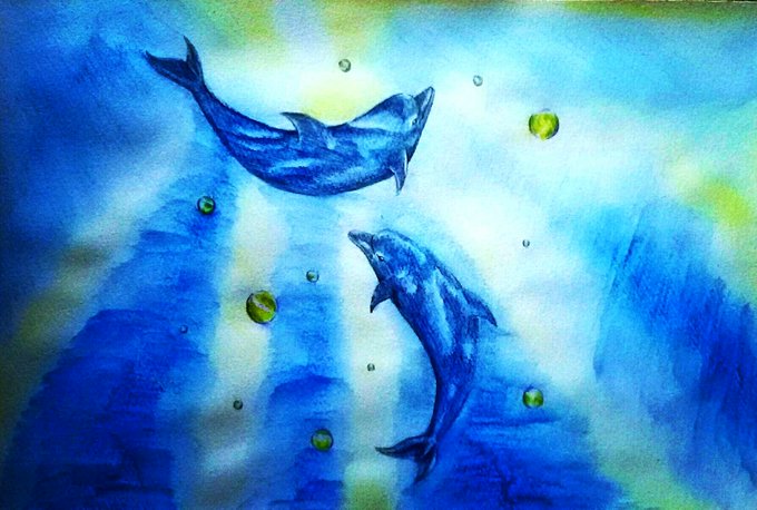 久しぶりのイラストです🐬✨ 海に行った気分をどうぞ✨ #イラスト #イルカ