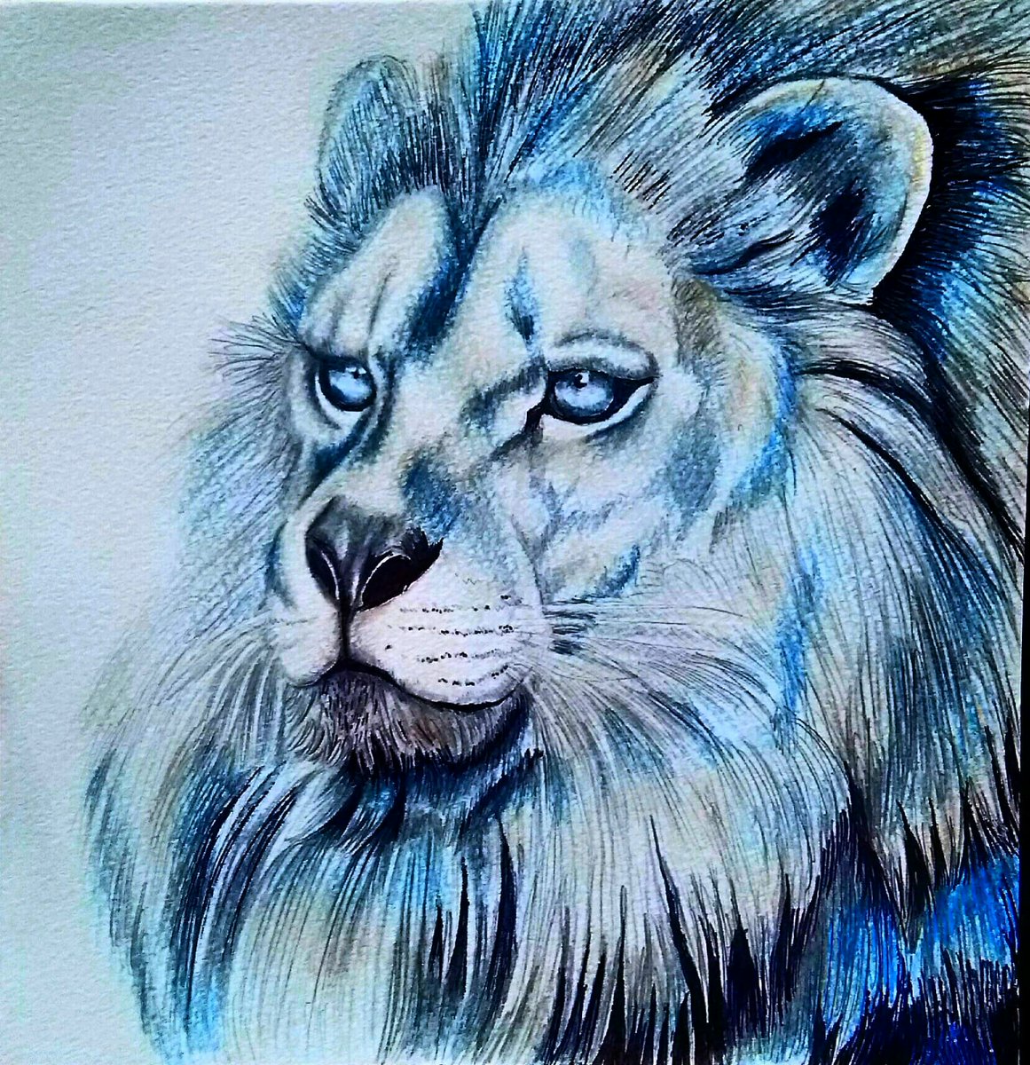 ライオンのイラスト🐾✨ 黒のボールペン、鉛筆、色鉛筆で製作しました✏✨ #イラスト #ライオン