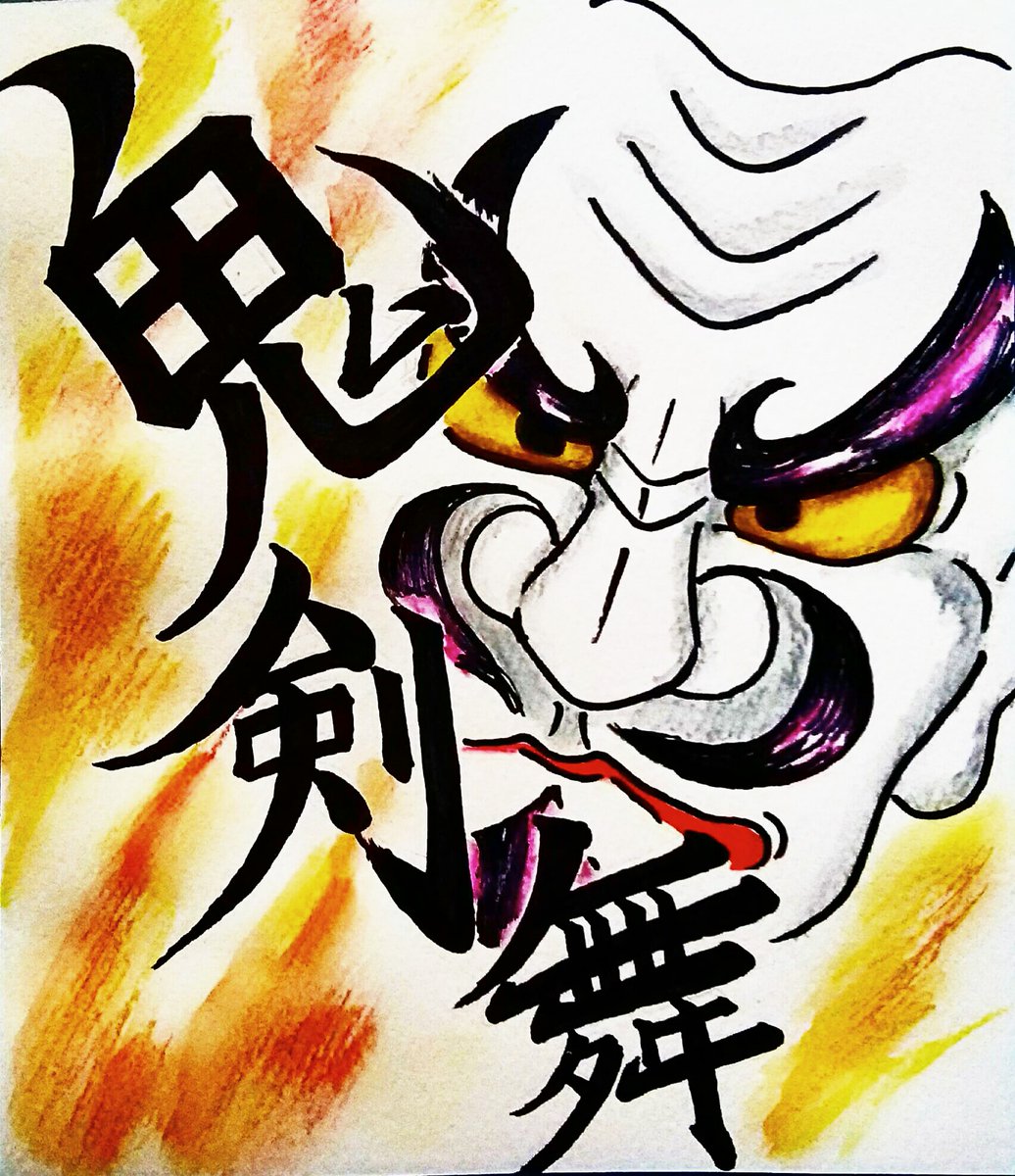 『鬼剣舞』 地元の伝統芸能です✨ #鬼剣舞 #イラスト #伝統芸能