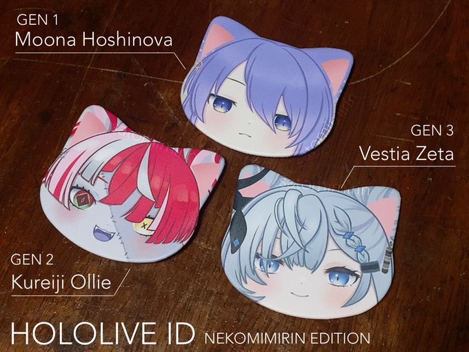 I was able to draw and finish my first batch of #HololiveID #HoloID neko cat-shaped badge pin all for Moonanyan, Ollienyan and Zetanyan 🛐😻✨ #HoshinovArt #graveyART #Zetacrylic #Moona_Hoshinova #Kureiji_Ollie #VestiaZeta
