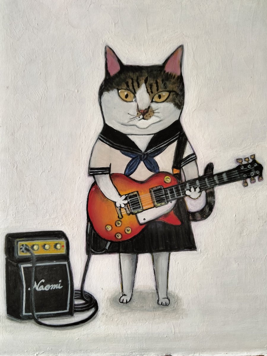 猫のナオミとギター 完成版 #段ボール絵 #イラスト #猫のいる生活