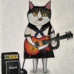 14 181 猫のナオミとギター 完成版 #段ボール絵 #イラスト #猫のいる生活 23/04/29 13:21