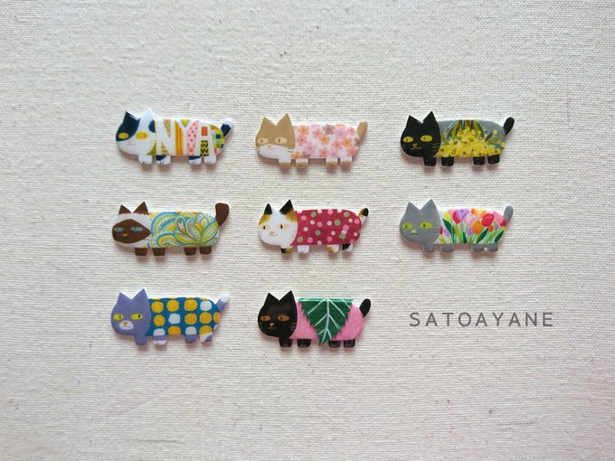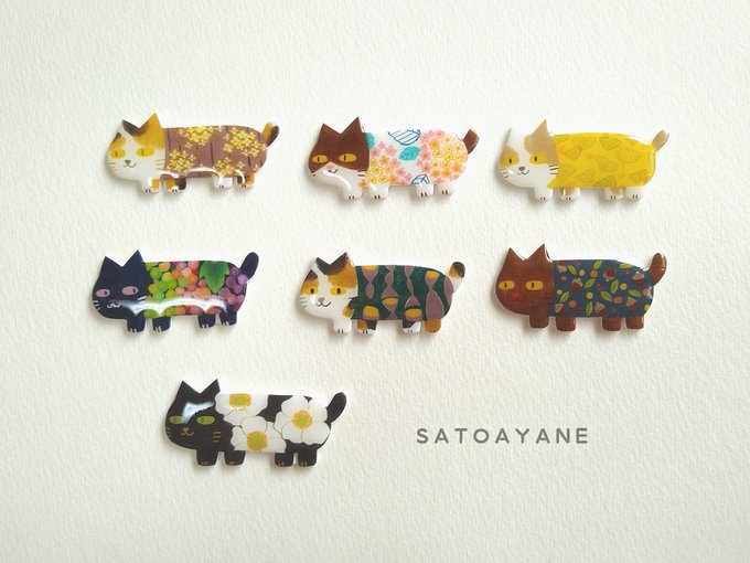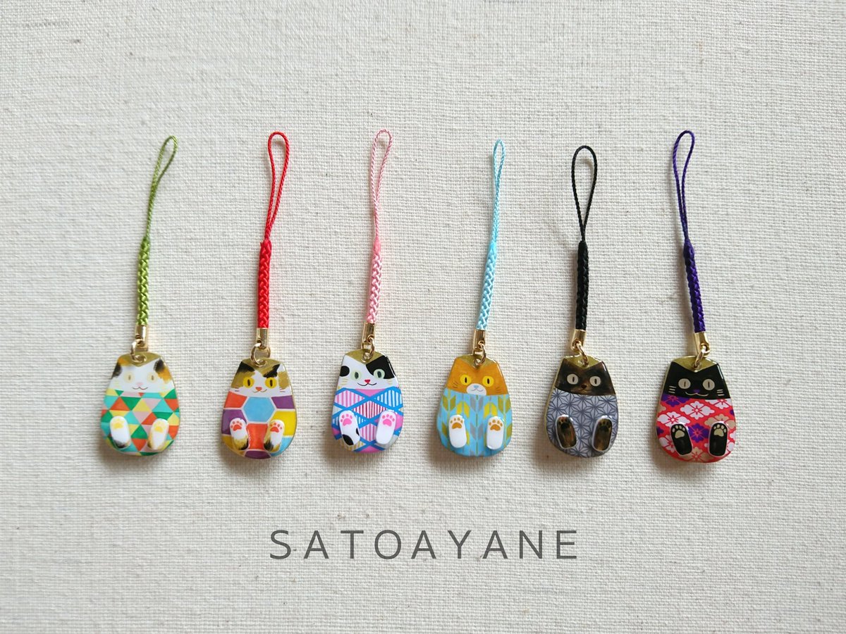 和柄あにまるず根付け 今回ねこの和柄配色レトロ着物参考にしました🐾どことなくハイカラ #てづバ #プラバン
