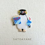 デザフェス盛り上がっております! 魚釣りブローチと皇帝ペンギンブローチは完売いたしました🙇ありがとうございます! 絵描きアデリーはこんな感じでシロクマクリームソーダはラスト1点です~