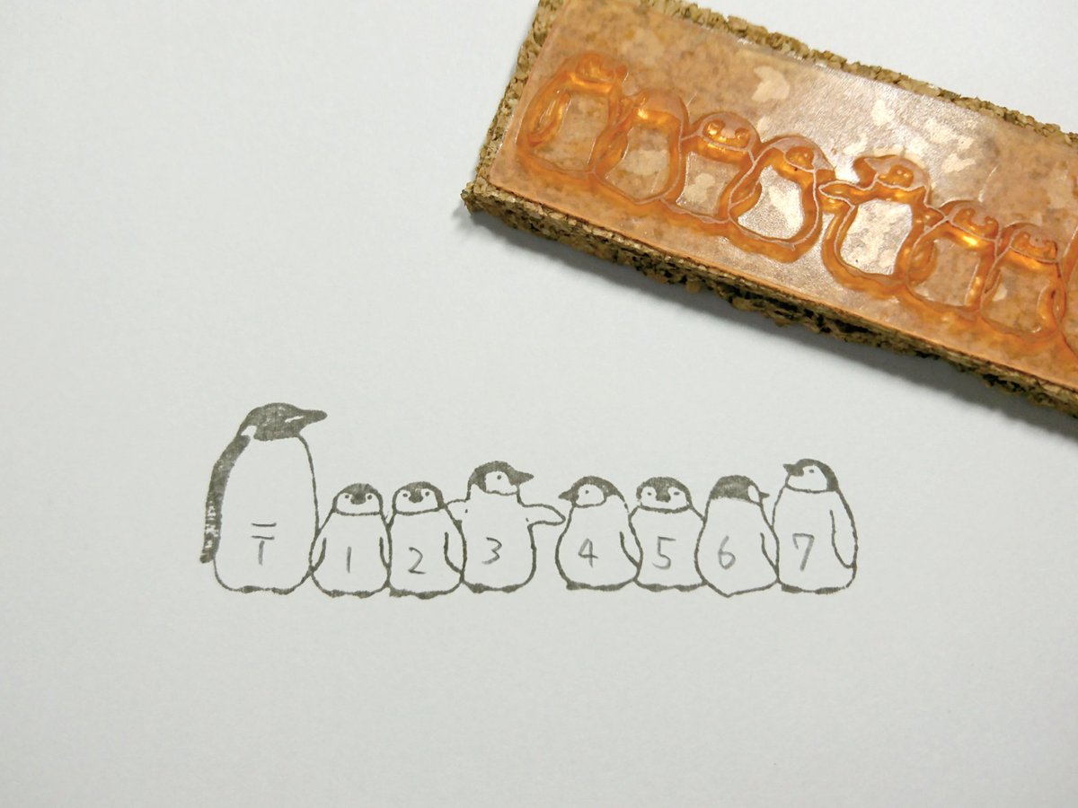 48 185 ついでに郵便番号記入欄のスタンプと特に使い道を考えてないペンギンのスタンプも作りました🐧スタンプ押すの失敗してるけどかわいい 18/06/10 13:16