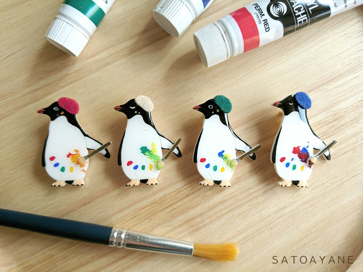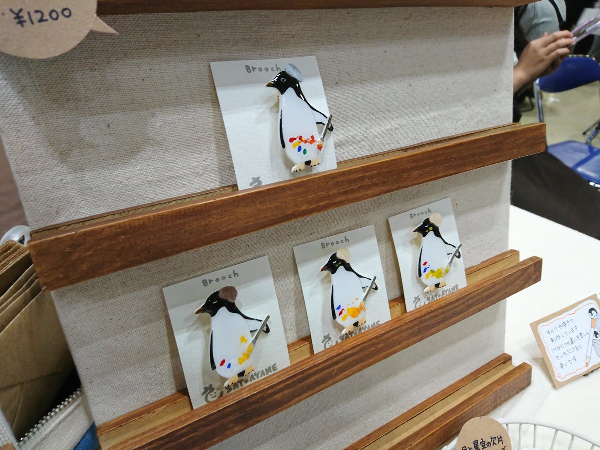 3 40 デザフェス盛り上がっております! 魚釣りブローチと皇帝ペンギンブローチは完売いたしました🙇ありがとうございます! 絵描きアデリーはこんな感じでシロクマクリームソーダはラスト1点です~ 18/11/10 15:03