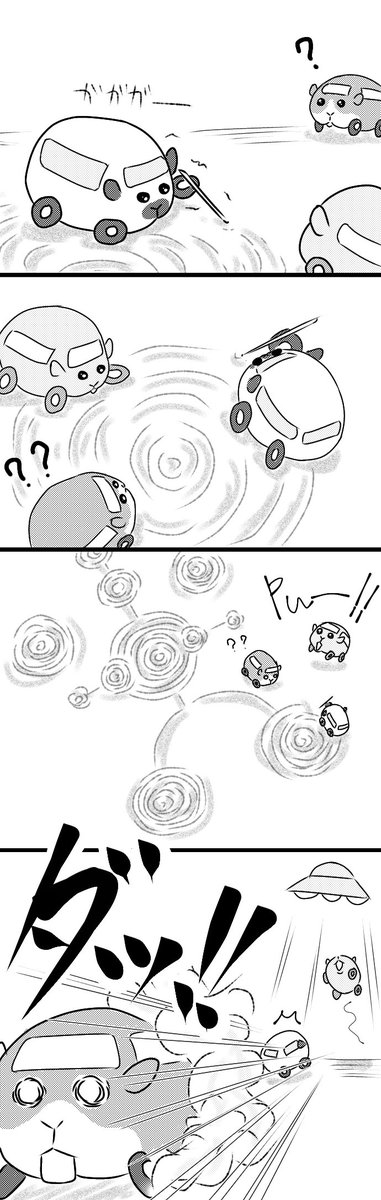 UFOの日なので再掲 #モルカーファンアート フラッタン:ポポムがUFOにさらわれたー! ポンタ:砂場で遊んでてポポムの言うとおりお絵描きしたらUFOが突然… (その後ポポムは無事に帰ってきました。タクシー代わりにUFO呼び出しただけのようですw)