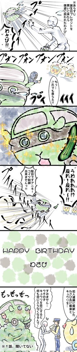 #モルカーファンアート #モルカー もし強盗に鉢合わせしたのがシロモじゃなくてわさびだったら パトモル「プイプイ🎖(勇敢なモルカーに勲章を…)」 わさび「プイプイ🥒(そんな事よりキュウリくれ)」 パトモル「…」