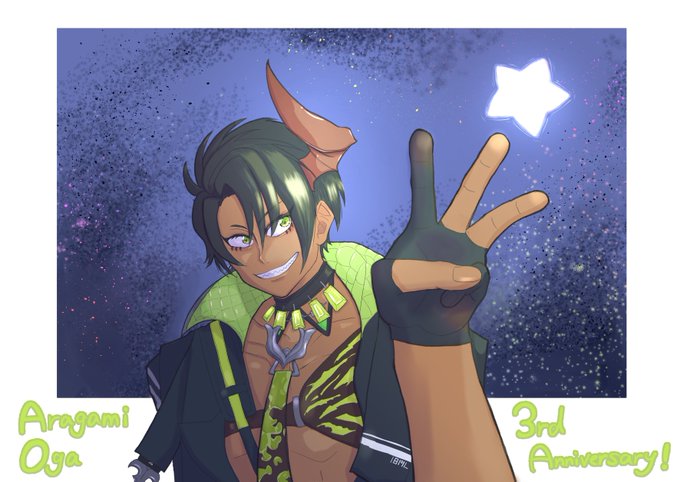 16 38 3周年おめでとうございます🎉 いつも元気をありがとう #荒咬オウガ3周年 #オウ画 23/05/01 00:13