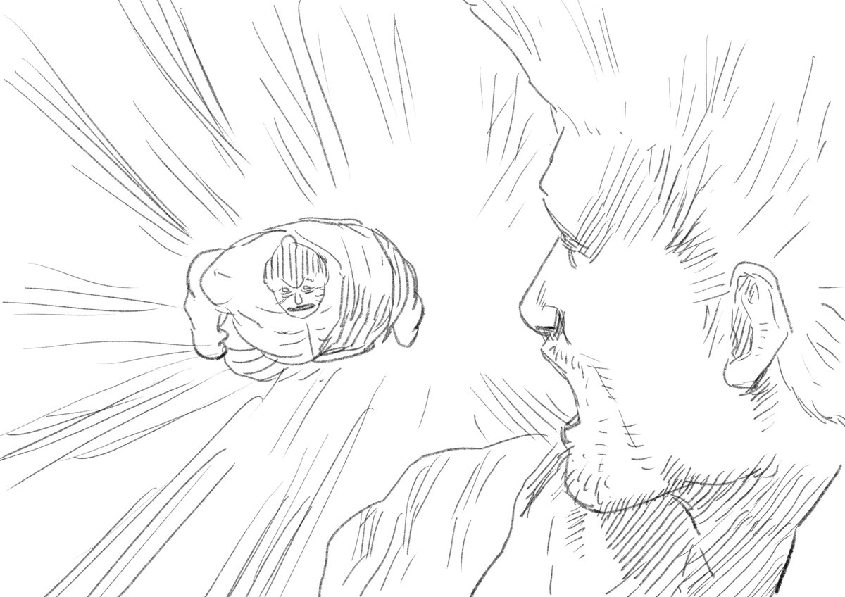 豪鬼さんの勝ち台詞は、「失せろ!!」とか「愚者が!!」とか罵倒系が多いのですが、ファルケ戦の時は珍しく、ファルケの身を案じるようなセリフを言います。 それに対してファルケが勝つと、、、? #格ゲーキャラ描こうぜ #ファルケ #豪鬼 #勝ち台詞 #うぬ待って痛いからちょっと本当やめて也
