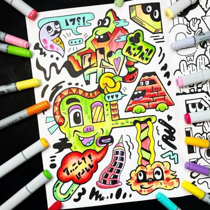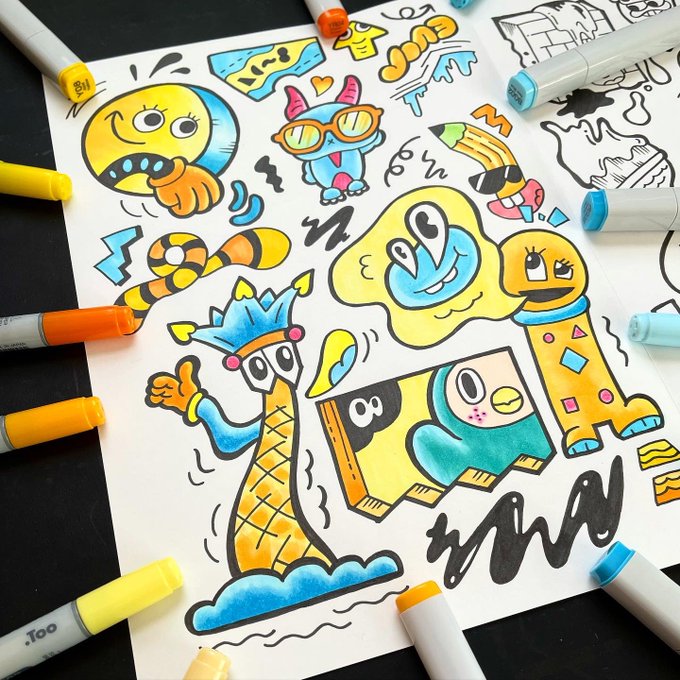 いろんなものをキャラクターにしてみた!これ以外のモチーフもすんなり描けるように、もっと自分の中の引き出しを増やそ。 #イラスト好きな人と繋がりたい #コピック #コピックスケッチ #イラスト #落書き好きさんと繋がりたい #オリジナルキャラクター #趣味絵 #線画