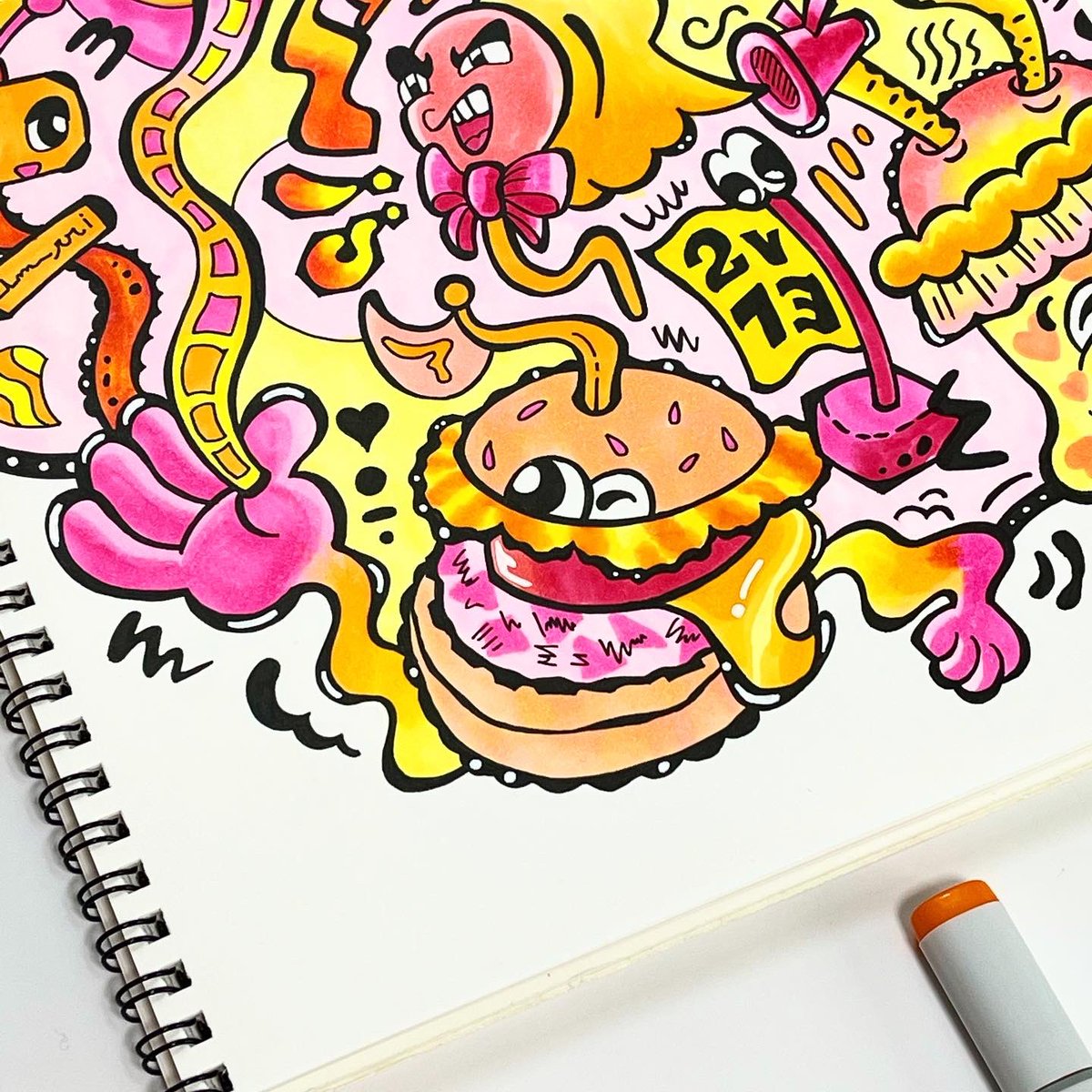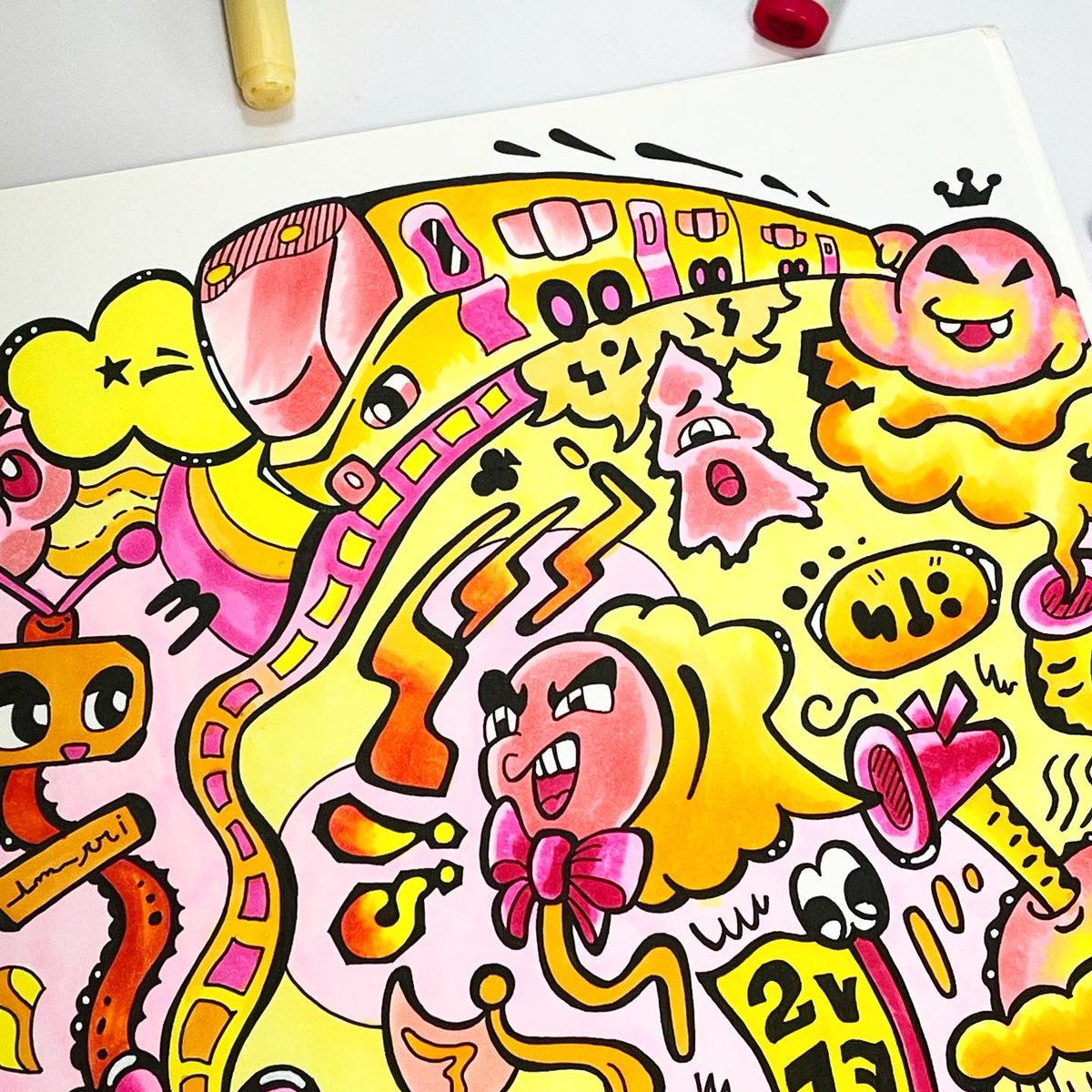 黄色、オレンジ、ピンクだけで塗ってみました!色数少なくても重ねて色作れるのが #コピック の良いところですよね〜 #イラスト好きな人と繋がりたい #コピックスケッチ #イラスト #落書き好きさんと繋がりたい #オリジナルキャラクター #趣味絵 #線画 #1日1絵