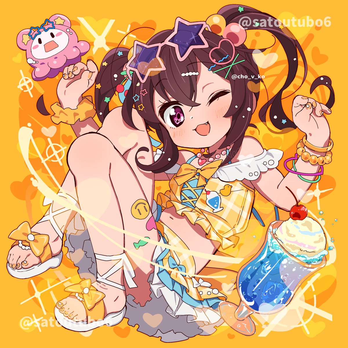ちょこさんのご依頼にて、アルバムジャケット用イラスト描かせていただきました✏️アクキーやアクスタにもなるみたい😳ポップでエモくてすっごくかわいい素敵な楽曲達、是非是非たくさん聴いてくださいね❣️☀️ twitter.com/cho_v_ko/statu…