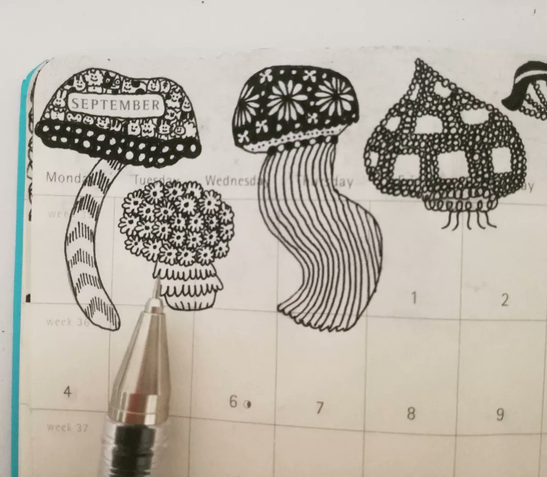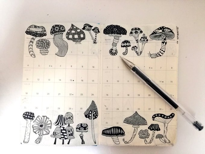 モレスキンの手帳に落書き 【きのこ】