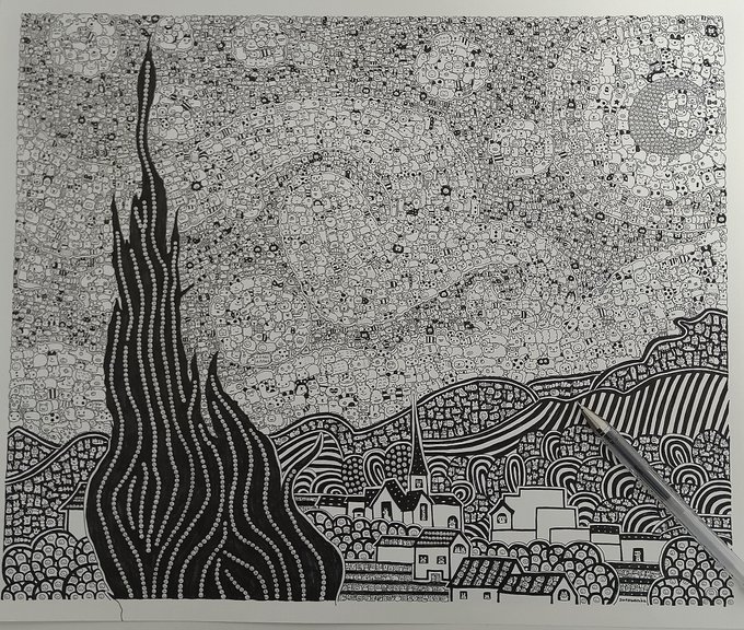 21 113 The Starry Night(星月夜) Vincent Willem van Gogh (フィンセント・ファン・ゴッホ) のオマージュ 23/04/15 18:55