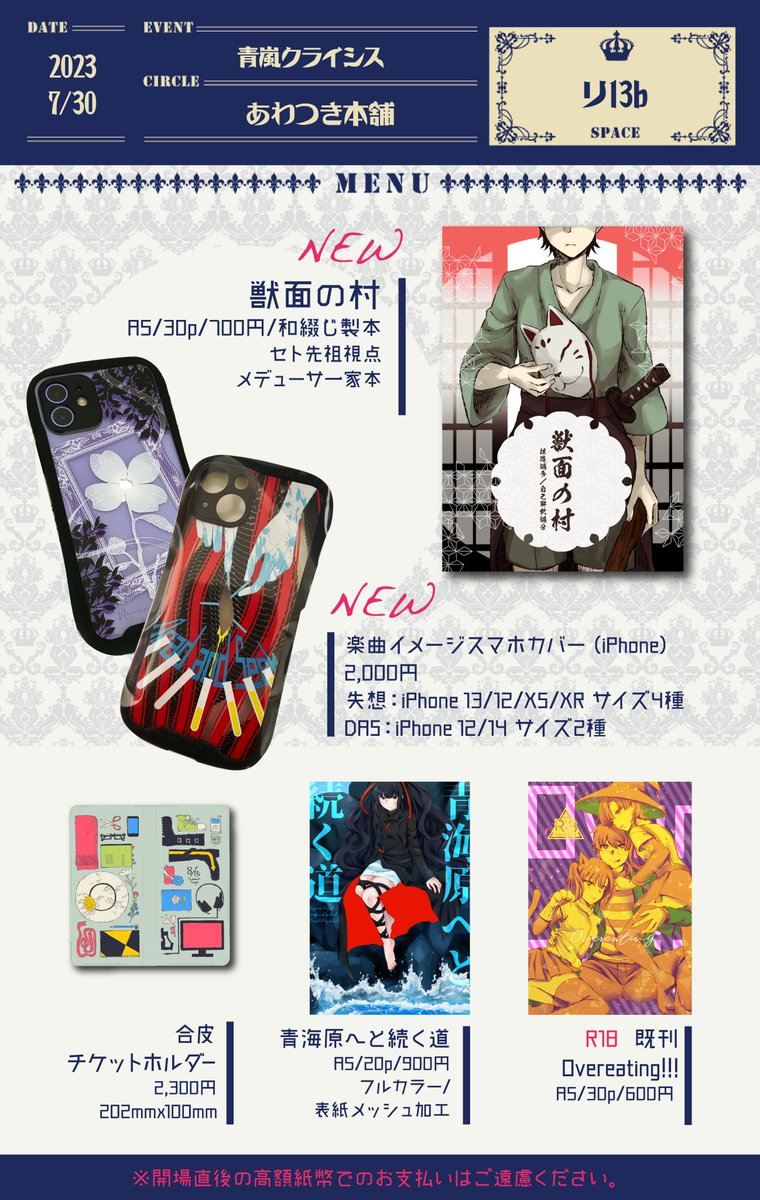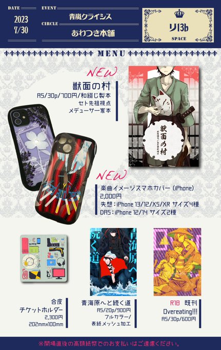 7月30日(東京)COMIC CITY 東京 149内開催の青嵐クライシスにて頒布の新刊サンプルです。 akaboo.jp/event/item/201… アニメに登場したご先祖さん視点のメデューサ一家の話。 A5/30p/700円/和綴じ製本 捏造過多、自己解釈注意