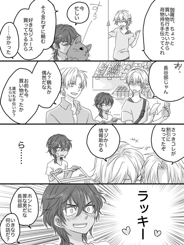 1 12 くりへしワンドロ。遅刻 「ラッキー」※年齢操作※現パロ 長谷部に会えて破茶滅茶に嬉しい小倶利伽羅 23/05/07 00:23