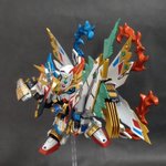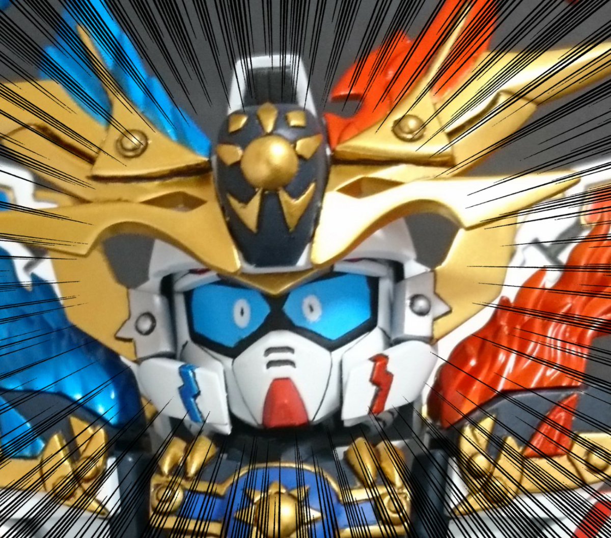 武者駆路守・光の極。 激闘に継ぐ激闘により、武装の大半を失った上、頑駄無結晶も砕かれた駆路守。 しかし、超将軍が遺した閃光結晶と荒鬼頑駄無の魂が宿る銀狼剣により、奇跡の復活を遂げた! #七人の欠落した超将軍