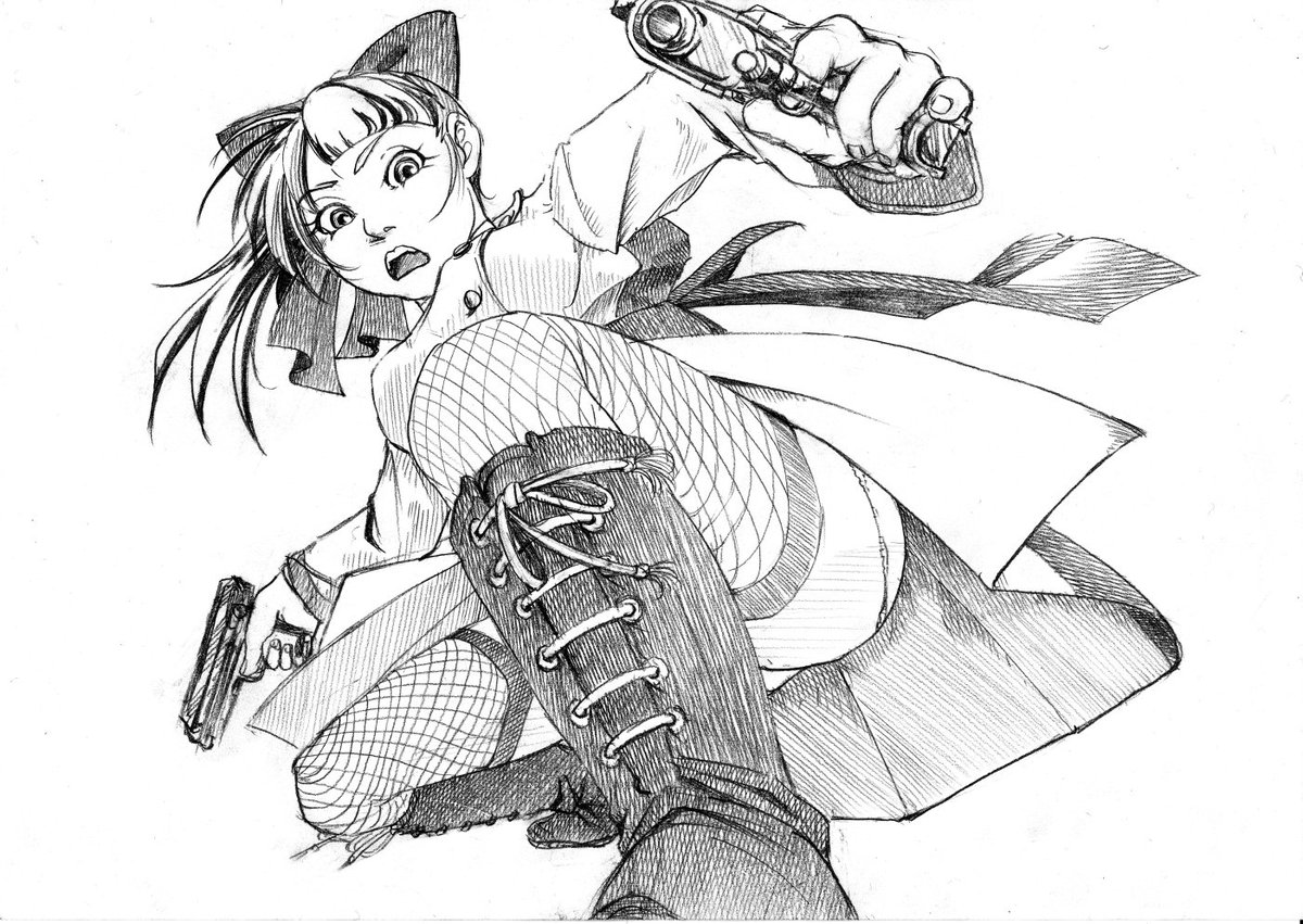 #深夜の真剣お絵描き60分一本勝負 2/27 朱鷺子 55分 2/28 アリス 1時間 3/1 ヘカーティア 1時間5分 アリスのポーズはFFXのルールー姉さん(うろ覚え) FFワンドロやってた頃は描けなかったねぇ・・・