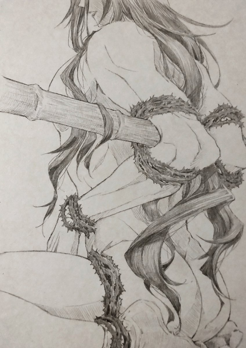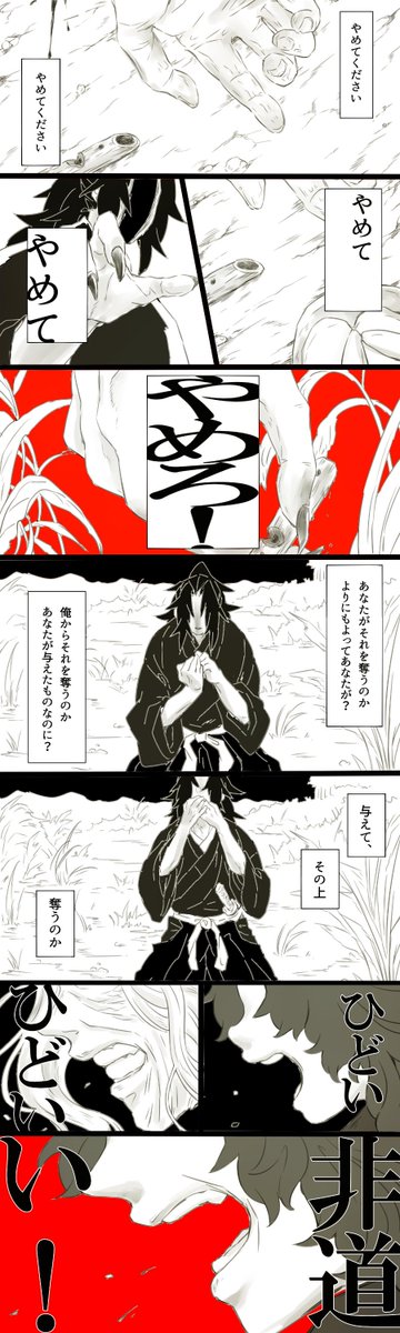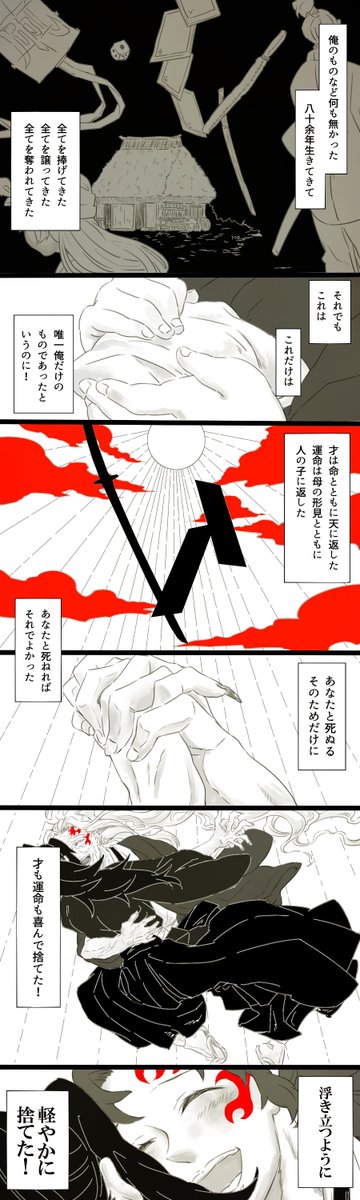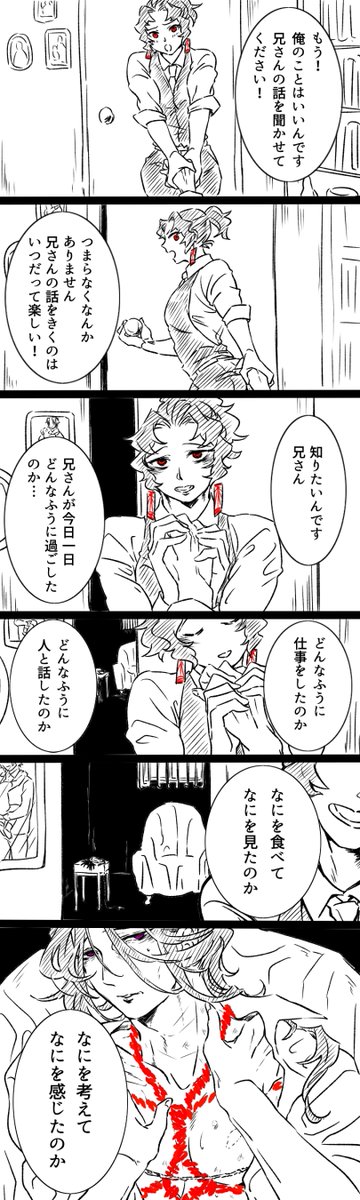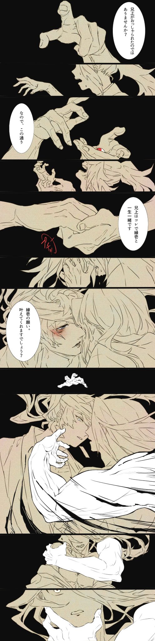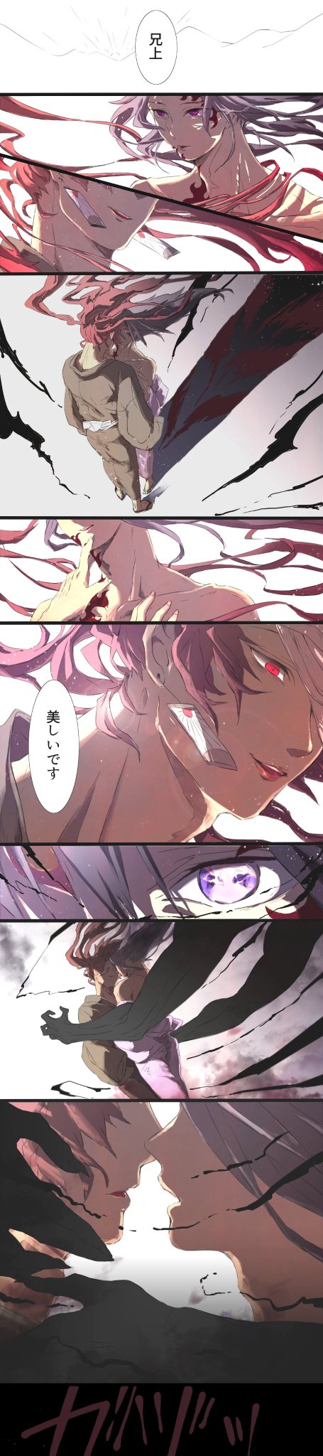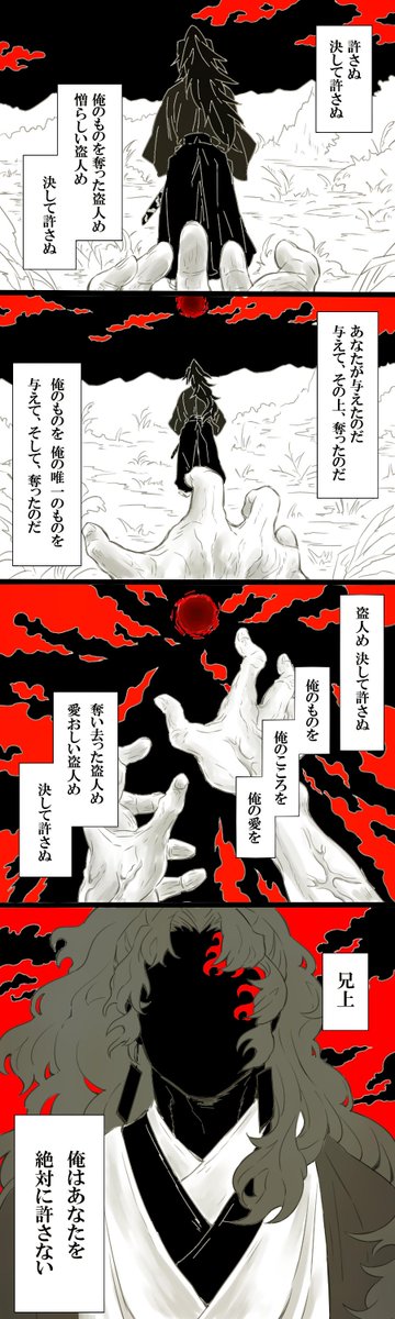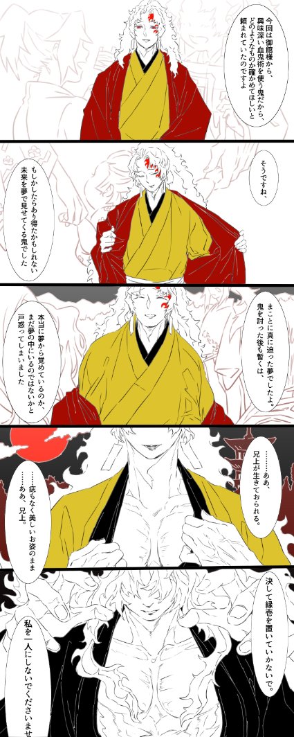 #縁巌小説実験企画〜一絵を目にして十を書く〜ファンアート 夏緒さま『夢幻の迷宮』に寄せてファンアート書きました。極上の闇落ちよりちエンドありがとうございました😭✨ ありえたかもしれない未来の夢=あかい月夜にみた悪夢ってとんでもない地獄の発想で最高と思いました! なまくびと出血注意です