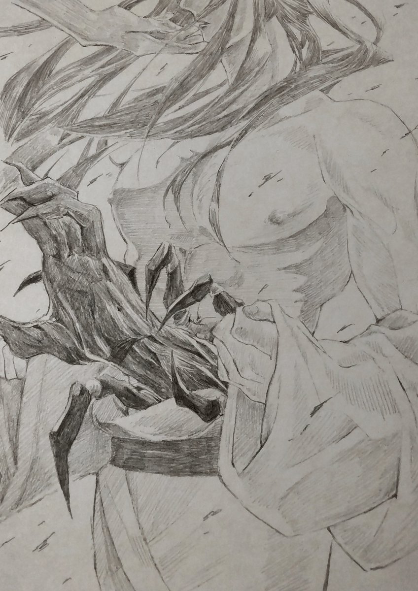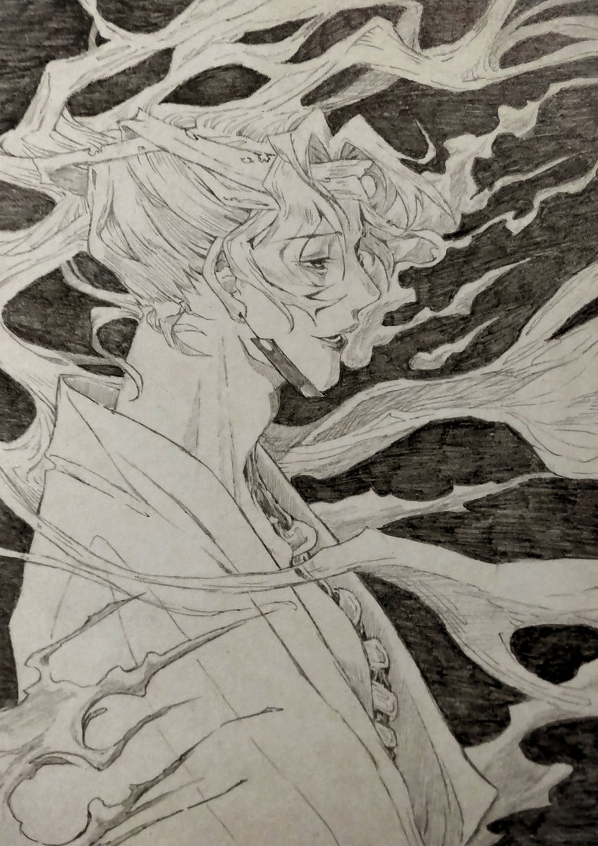 #縁巌小説実験企画〜一絵を目にして十を書く〜ファンアート 芽依さま『陽炎に焦がれ』に寄せてファンアート描きました 別界隈からのご参加、誠にありがとうございました😭🙏✨お題絵シーンの描写が美しすぎて感無量&黒い腕の解釈に脱帽五体投地でした 彼らのその後を妄想しながら100万回咀嚼します!