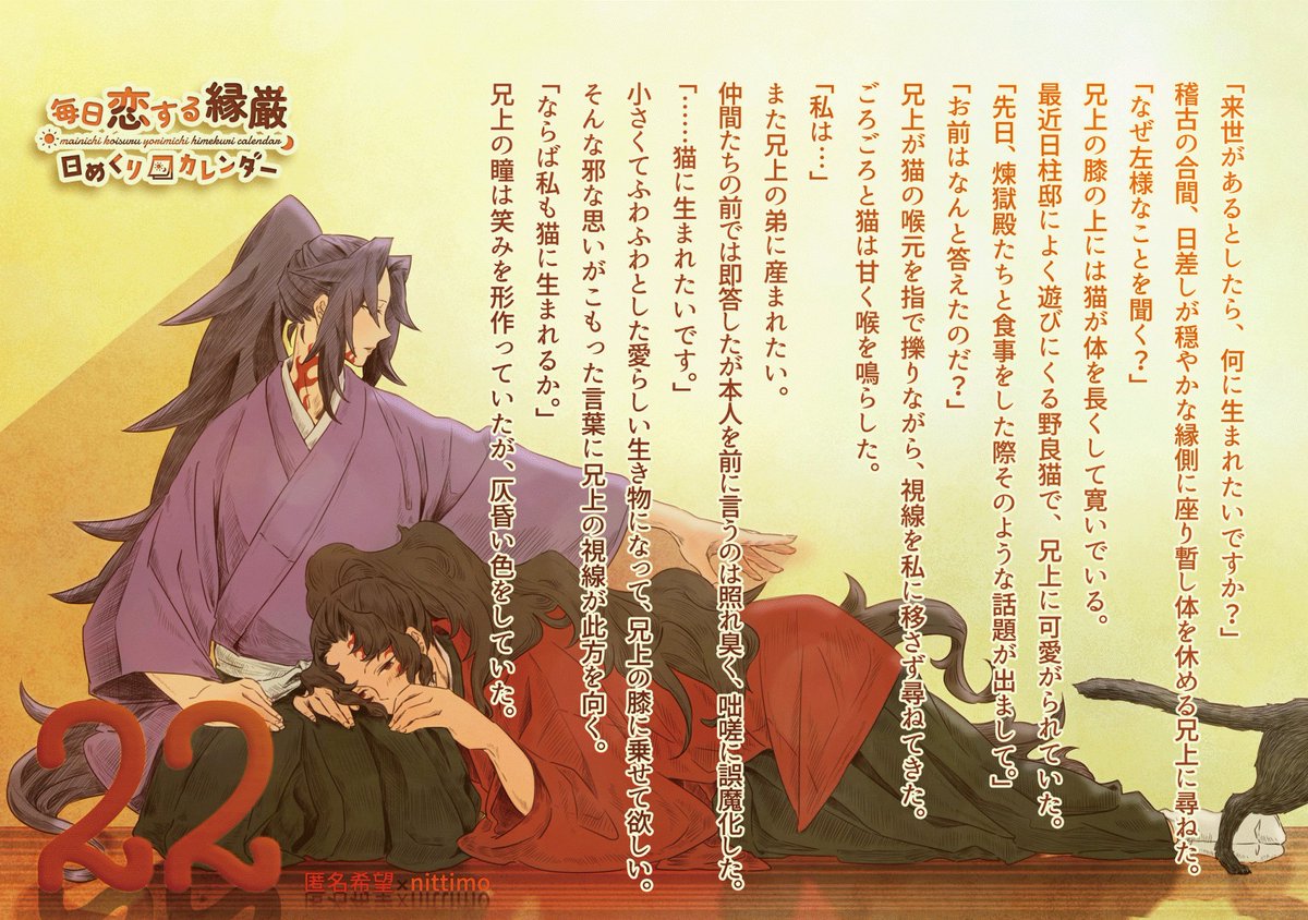 #毎日恋する縁巌日めくりカレンダー企画 カレンダーイラスト8作目は、匿名希望さま×nittimoです👹🔥🔥🔥 22日は実はすでに使用している日付なのですが、ネコチャンのお話なので…(´・ω・`)テヘッ🤛こうした日付の調整は今後もあります🙇💦己のノープランが悔やまれる…ッ😫