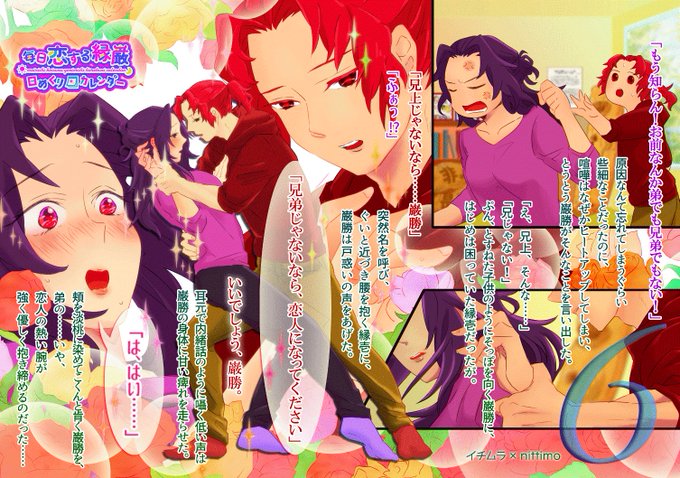 #縁巌夜を越え染まる 毎日元気いっぱいによりみち描いてます❤️🔥 全速力で迷走した結果、口絵の中によりみちを6組(のべ16名)詰め込んでしまいました。 締切厳守でがんばります!🍑🔥🔥🔥🔥🔥🔥