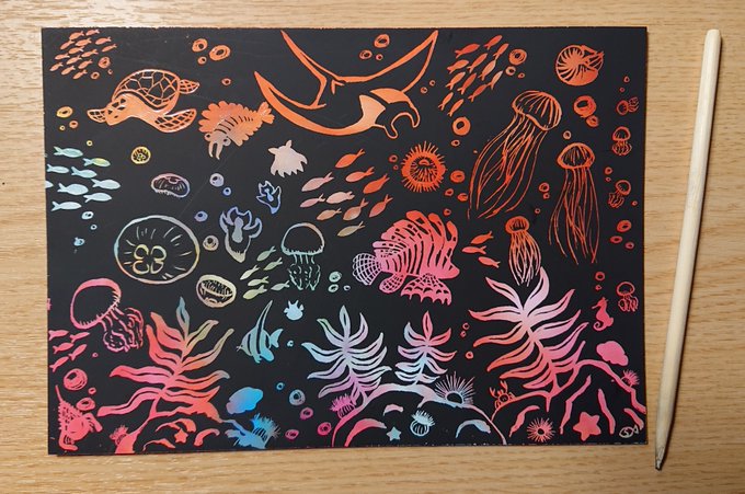 ダイソーに気になるものがあったから買ってみた!!( `꒳´ ) これ初めてだけど、めちゃ綺麗で楽しいし、夢中になるねw(੭˙꒳˙)੭ #絵 #絵描きさんと繋がりたい #絵師さんと繋がりたい #絵柄好みって人にフォローされたい #イラスト好きと繋がりたい #イラスト #Illust #illustration #スクラッチボート