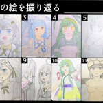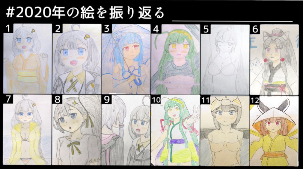 #2020年の絵を振り返る 力技でスマホ編集しましたので所々ガバガバですわ… 12月はこれから描きます() 1年経っても何も成長していない…(画像略)