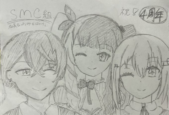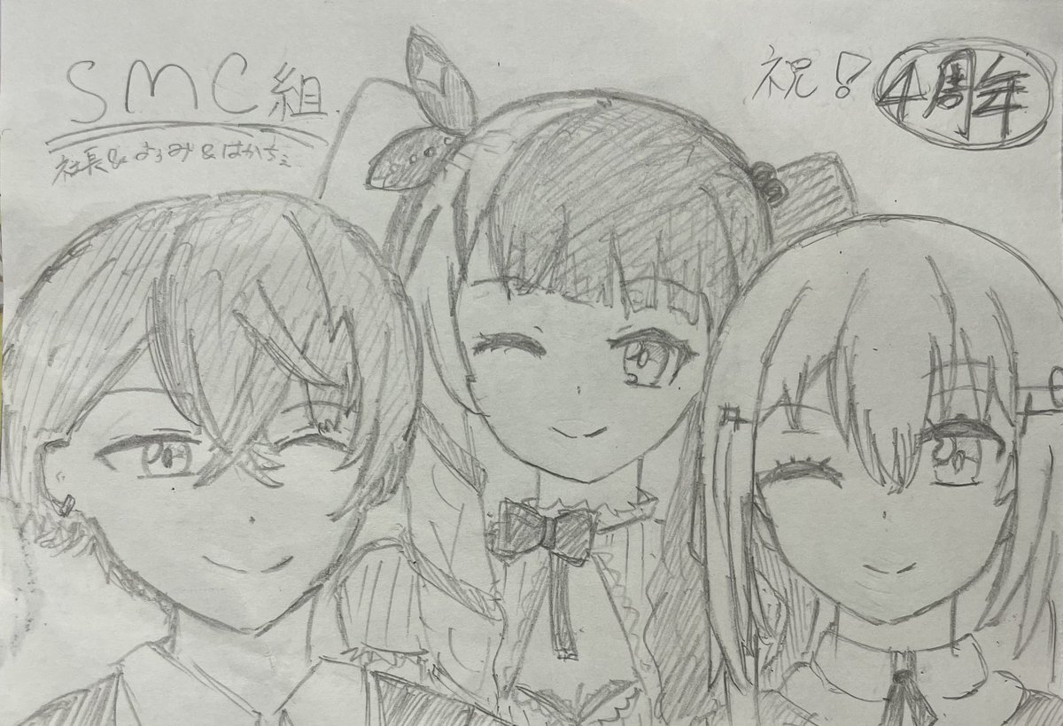 4周年おめでとうございます🎉🎊 3人の雰囲気ほんとにすこです🫶 #SMC組4周年 #加画美 #れなの鳥っくあーと #はかせレポート