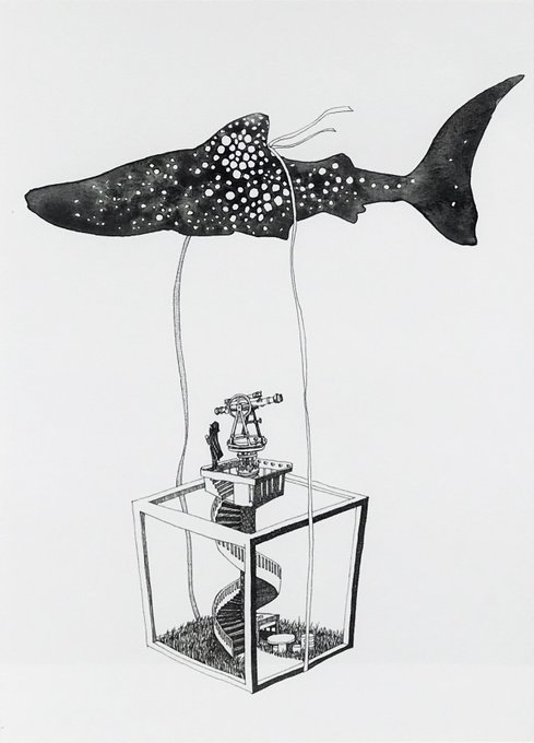 0 6 #ペン画 #pen #black #artwork #Watercolor #art #水彩 #whaleshark 20/04/05 21:05