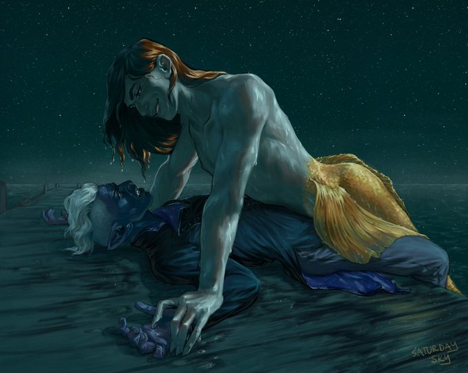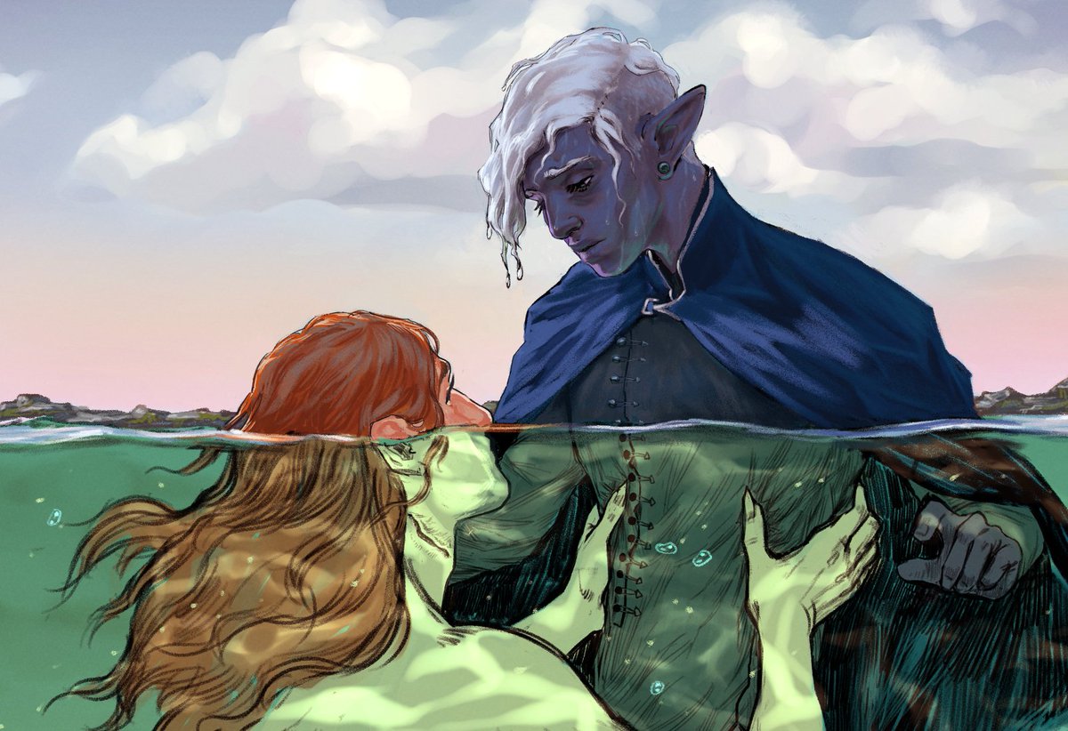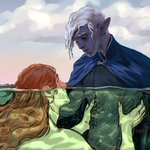 Art for chapter 9 of til human voices wake us, my friend's lovely shadowgast mercaleb au! In this chapter: swimming, snarking, shellfish #criticalrolefanart #shadowgast