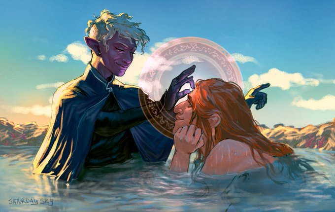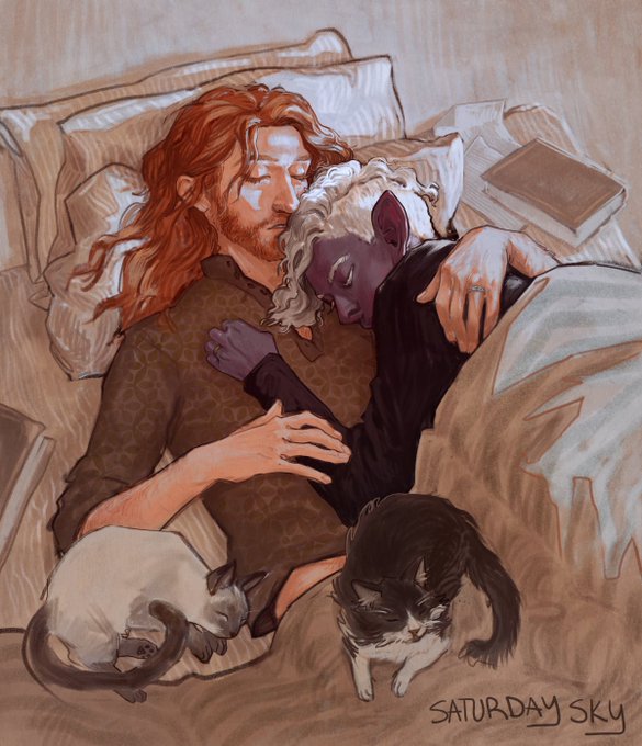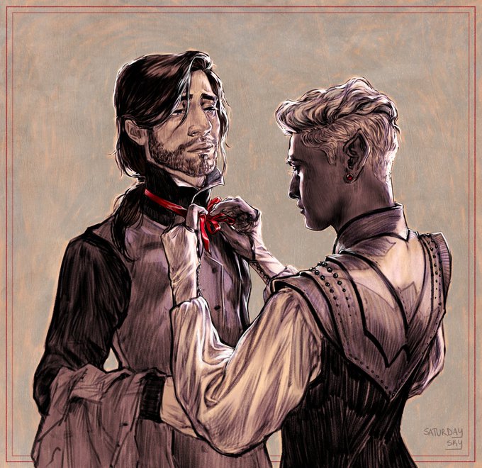 Sometimes a sad cat wizard deserves to get swept off his feet by his sad time wizard narrative foil <3 #criticalrolefanart #essekthelyss #CalebWidogast