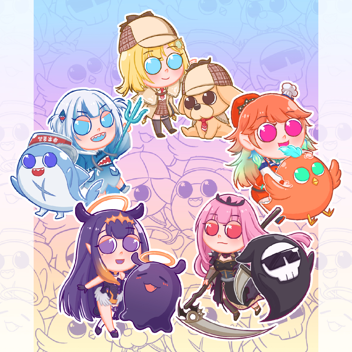 40 379 Holomyth with mascots #ameliaRT #gawrt #ArtsOfAshes #inART #callillust #Holomyth 22/03/29 23:54