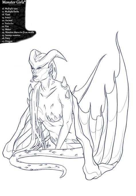Inktober Day 27 - Dragon (“finish pieces even though you don’t like them” was a mantra with this one 😂) #inktober #inktober2021 #dragon #monstergirls