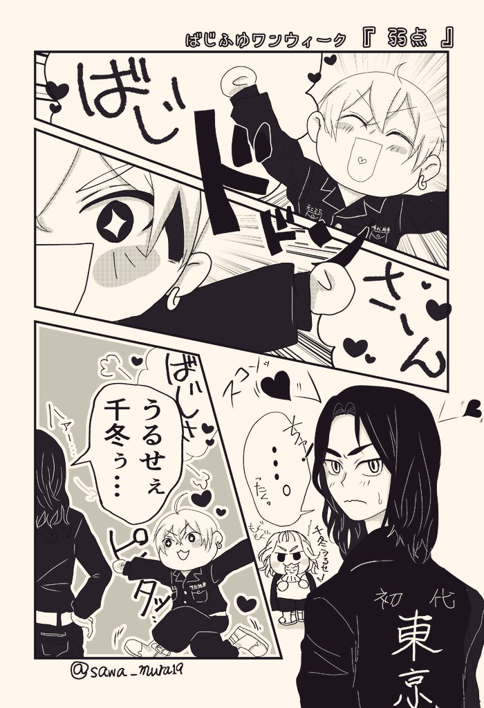 #ばじふゆワンウィーク 遅刻しすぎて過去お題&意味不明になったばじふゆ😂 お互いが弱点という事で…(:3_ヽ)_ (意味不明でサーセン💦) 初めてコマに描いてみたけどめちゃくちゃ難しい😭‼️