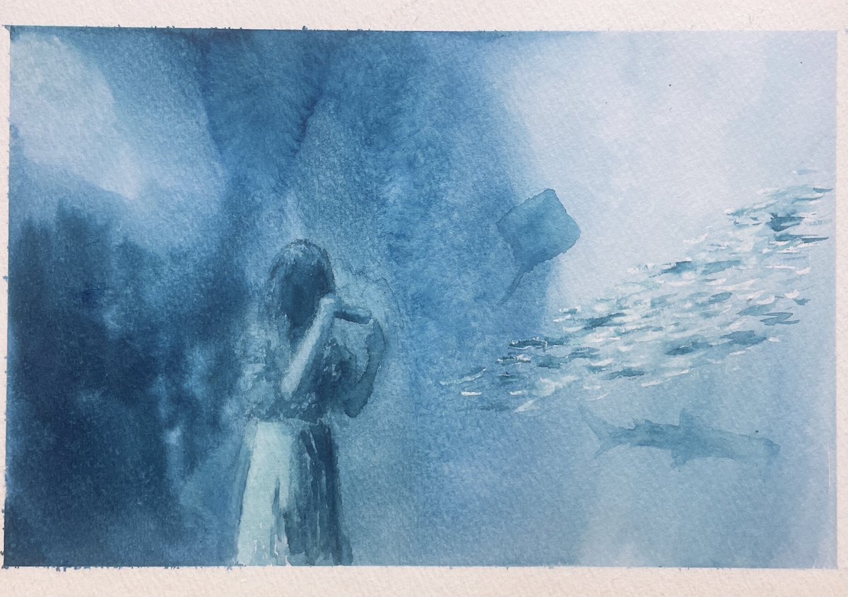 3 25 まだ遠くへ 海の方へ #ヨルシカ #老人と海 #色彩雫 #水彩画 23/02/02 00:19