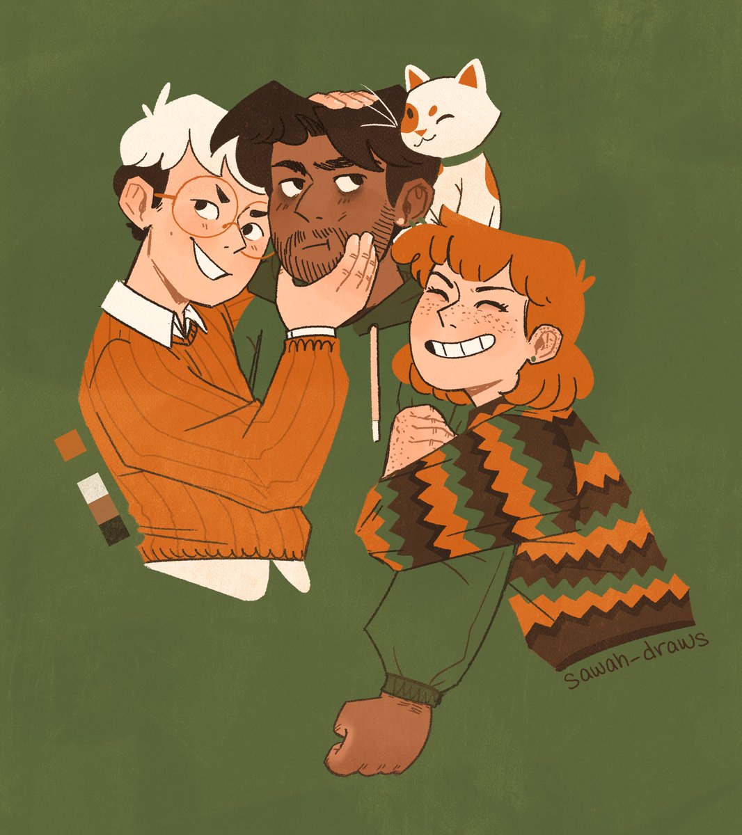 A timeskip of Jon and Alex's family Christmas party 🎄✨ I definitely did not tear up while adding Alex's grey hairs :,,) #originalcharacter #oc #webcomic #comic #digitalart #illustration