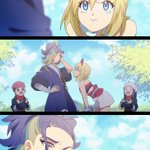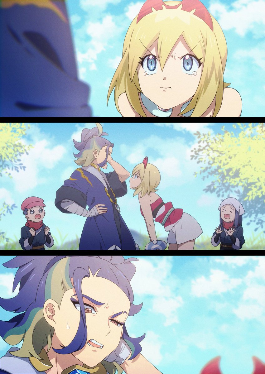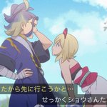 これはアルセウスがアニメ化された時の強めのセキカイ幻覚。 「その場の空気」を大事にする女と「時間厳守」なせっかち男の攻防は多分これからも続く。。😭 でもそんなせっかちな男が女のために逸る気持ちを抑えてじっと待てを食らってるところも見たい。 #PokemonLEGENDS