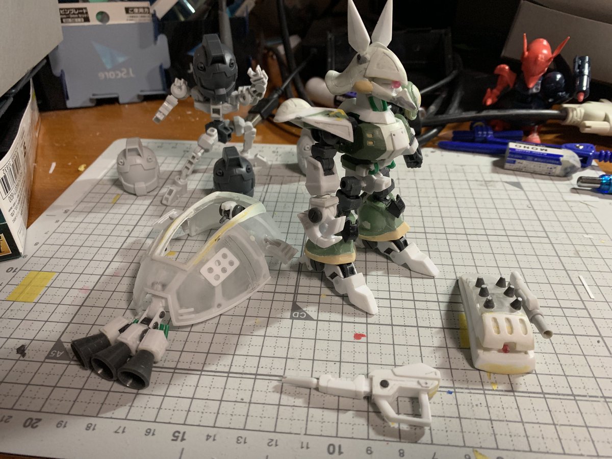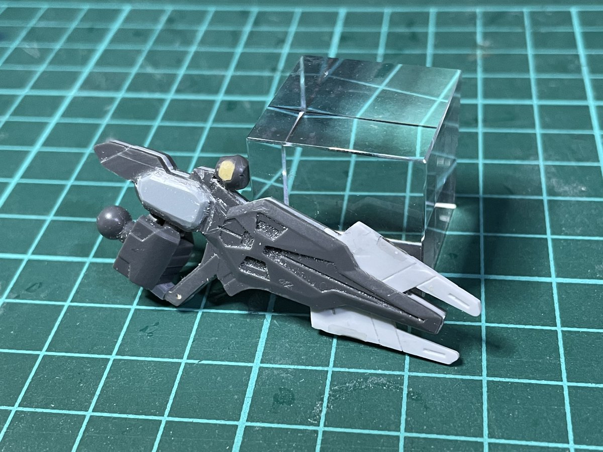 今月は完成なしです。最近あまり作業できなく、電飾SDEXエアリアルはまだ時間がかかる模様😅 最近の作業成果は、V時アンテナ裏の整形とか、ビームライフルニコイチして幅増し&ビットオンフォーム対応とか、ガンビット飛行状態展示用のエフェクト試作とかぐらい #今月完成しなかったプラモ晒そうぜ