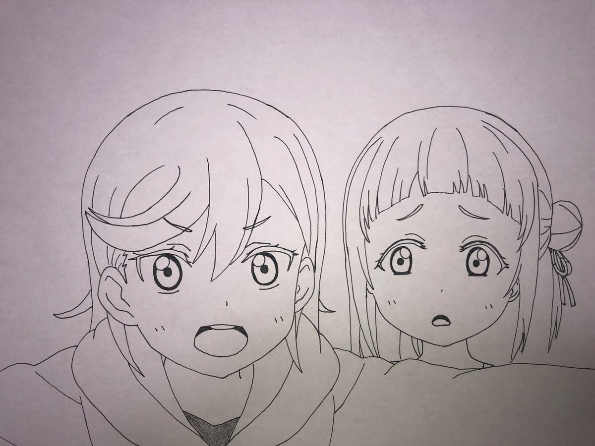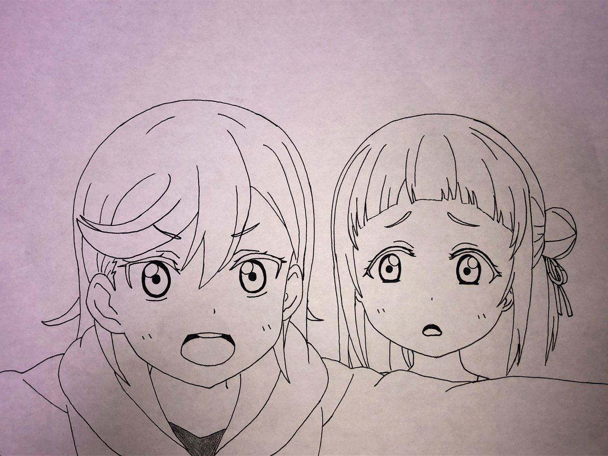ラブライブ!スーパースター!! 第6話 いじめっ子から、ちぃちゃんを守るかのんちゃんと、ダンス大会直前、かのんちゃんに「待っててね」と伝えるちぃちゃん描きました🍎⭕️ #lovelive #lovelive_superstar #Liella #絵描きさんと繫がりたい #ラブライブ好きと繋がりたい