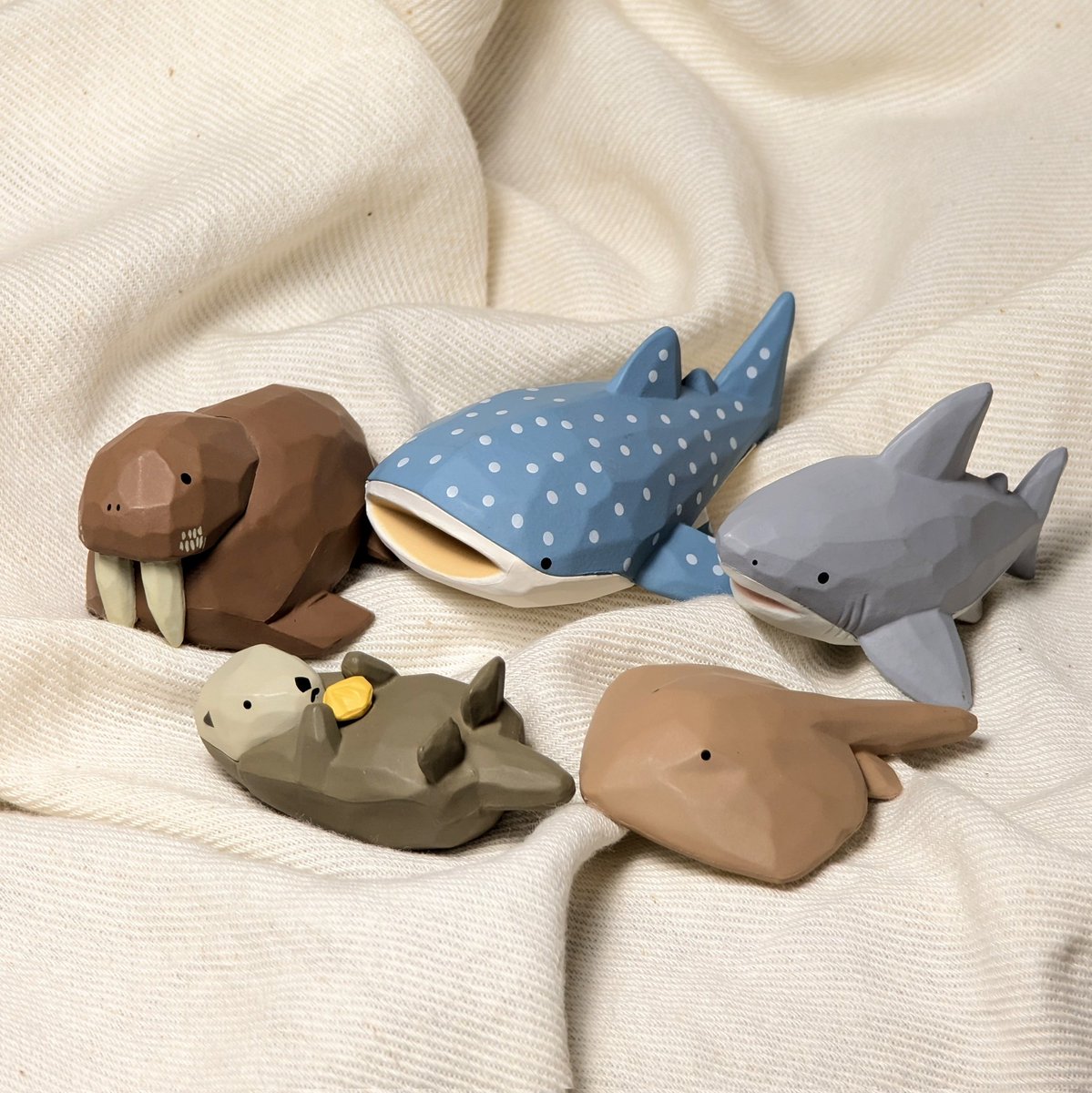 721 2475 『川崎誠二の木彫り動物たち3』は、今週から発売開始みたいだよ!!私の木彫りを元にしたフィギュアのガチャガチャ第3弾です!今回は海の生きものです。 写真は実際のガチャに入っているフィギュアだよ!私の実物の木彫りにかなり近くなっていてとても出来が良いです!! みんな、沢山回してね! 24/08/20 22:52