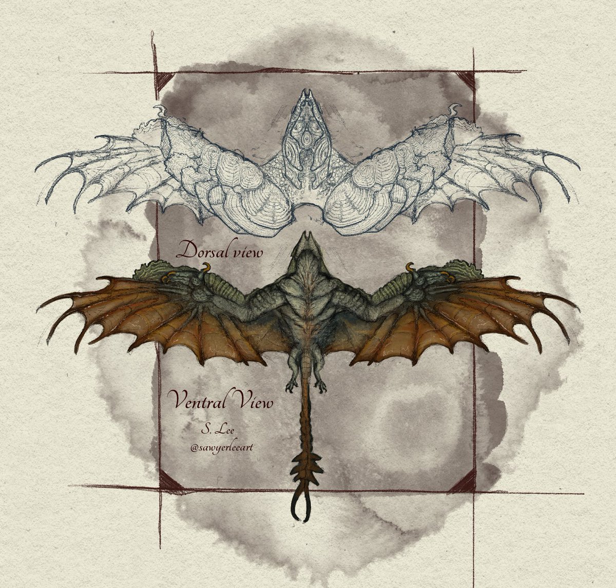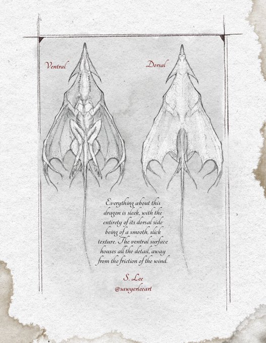 Ventral & dorsal sides of the Screaming Windlancer. These sleek dragons are covered in tiny scales, sacrificing armor for agility. For you don’t need armor if you don’t get hit.