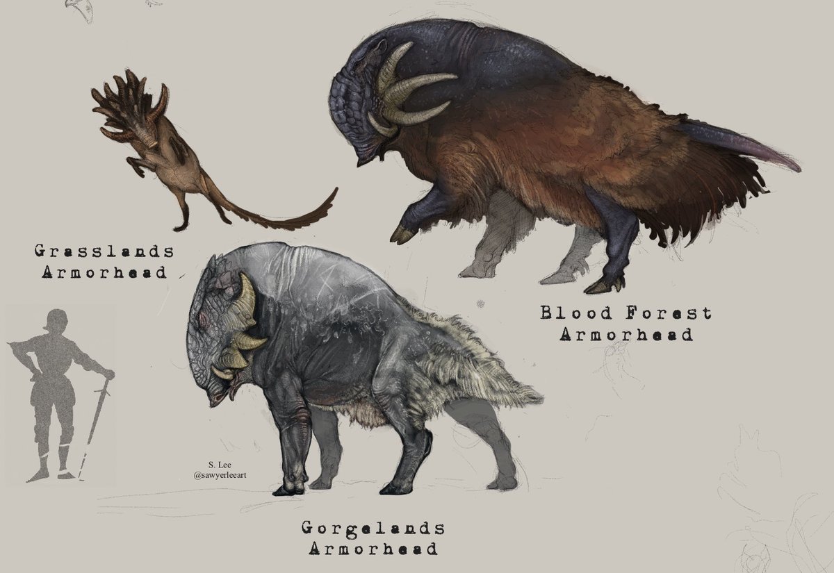 Using their wings to catch wind, Screaming Windlancers are the fastest dragons on land. Males grow gardens of curated fruits to house & impress a harem of females during season, traveling far & wide for the most diverse selection of seeds. They’re dreadfully territorial.