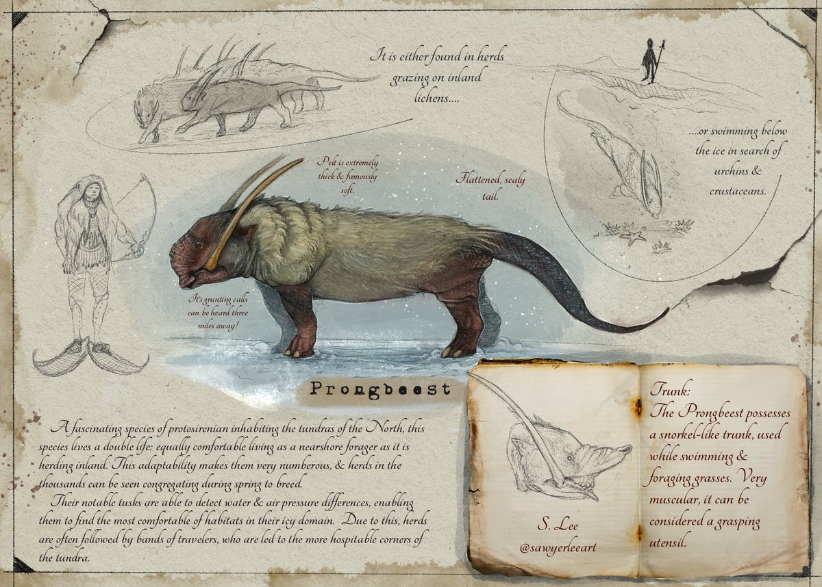Clatterjaw manuscript, approx. 953 years old. The juxtaposition of the 215 ton bite force & the spindly, delicate legs capture the minds of scholars, who historically feature them as mythical figures. They are Jealous Wrath, immense force held by a thin frame.