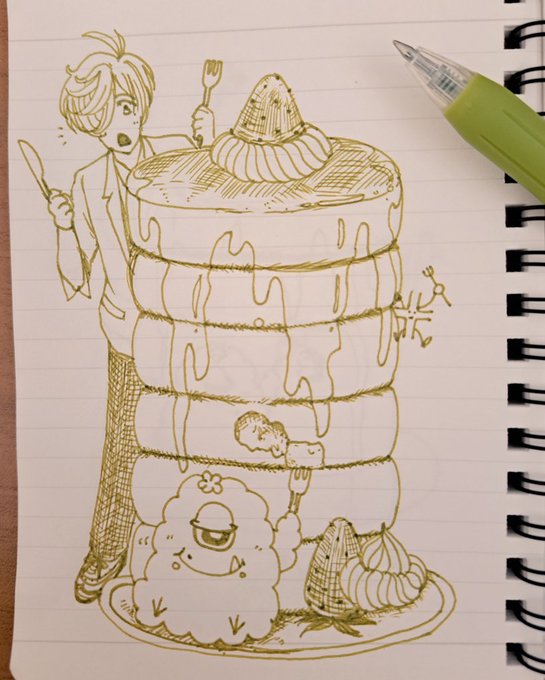 大きなパンケーキで、おは朝ごはんー! #絵バンス