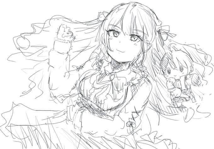 友達のあちぱちょ借りて描いたひなのーのと人形かみーと(めっちゃラフ) #ひなのの絵なの #かみ絵いむ